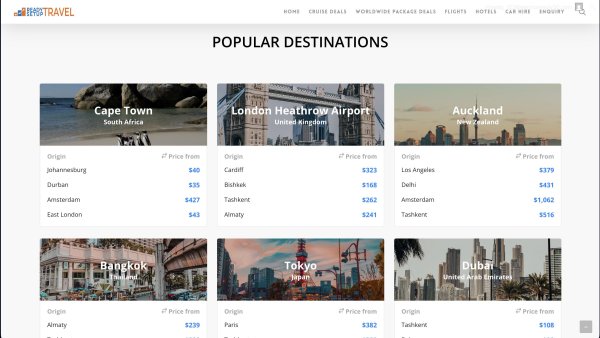 Our fantastic Top Exclusive Travel Site including Exclusive Worldwide Cruises , Package Deals & Live Travel Booking Site allowing your customers to book international Flights, Hotels and Car Hire Worldwide.